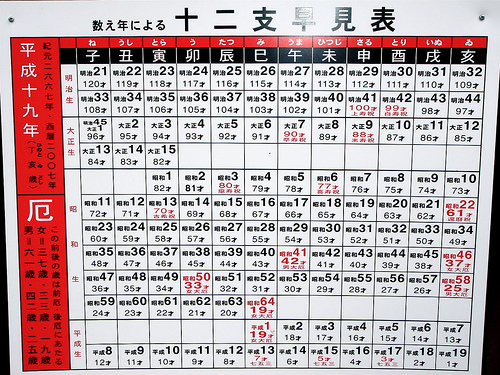 Chart of yakudoshi (厄年, literally "calamity years") from a shrine in Japan.Yakudoshi chart. | jmurawski